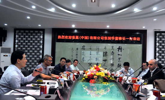 交流會上,楊董致歡迎辭并介紹了潘高壽公司近年的發展概況,盧副總介紹了潘高壽傳統中藥文化以及最新的防霾實驗成果。雀巢代表一行對潘高壽的中藥養肺護肺文化表示贊賞,希望未來能把中國傳統文化特點與雀巢產品中西結合。雙方就產品研發、健康科學、市場推廣、產品銷售等內容進行了交流探討。