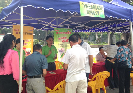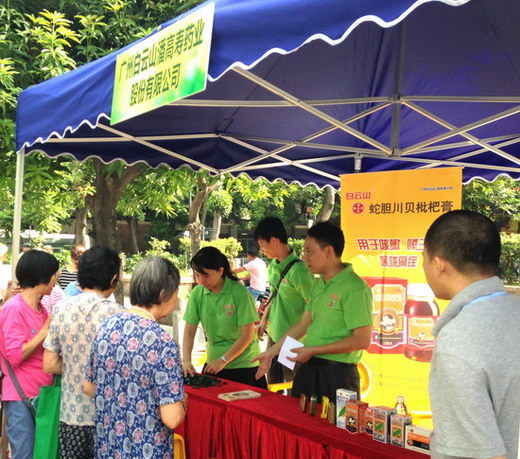 活動期間,前來咨詢潘高壽四大產品(蛇膽川貝枇杷膏、蜜煉川貝枇杷膏、治咳川貝枇杷露、蛇膽川貝液)功能主治、用法用量及注意事項的群眾絡繹不絕,熱情高漲。白云山潘高壽藥業工作人員耐心作了解答,并向市民贈送產品潘高壽川貝枇杷糖及潘高壽潤喉糖,得到市民群眾的一致好評,贊不絕口。
