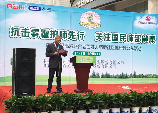 廣州白云山潘高壽與老百姓大藥房連鎖及相關政府部門負責人共同啟動首屆護肺日活動