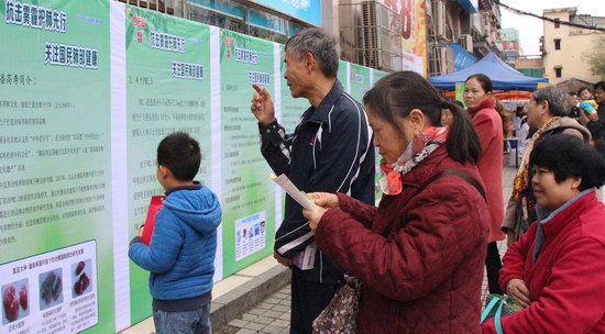 市民駐足了解防霾護肺科普知識