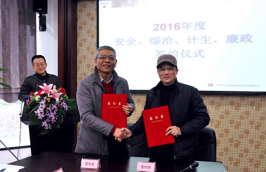 梁書記和生產總監葉耀成進行安全、綜治簽約