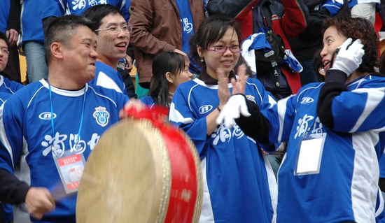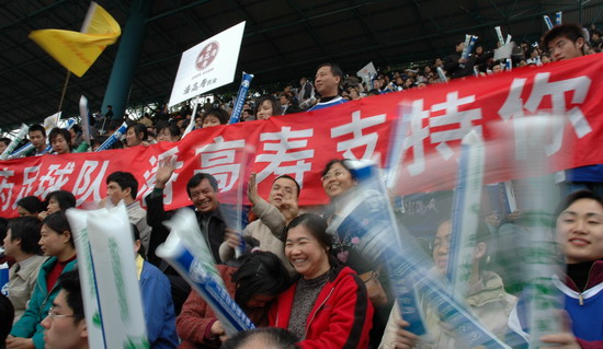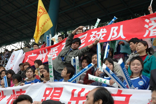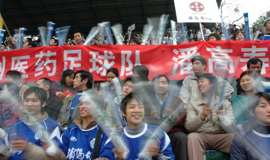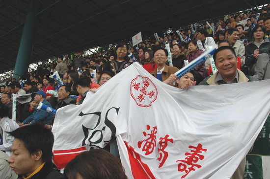 “燃燒你的激情,踢出你的自信”潘高壽藥業300名球迷打出的橫幅頗有氣勢。恰與球場火熱的氣氛相互應,其時,球場翻騰著一片藍色的海洋(球迷們齊齊身穿獲贈的廣藥隊新賽季藍色球衣)。廣藥集團下屬近20家企業各組團的啦啦隊各自各威風,齊為主隊喝彩。只見手握充氣棒,相互敲打,搖旗吶喊聲不絕于耳……。廣藥集團對這場球賽相當重視,包括楊榮明董事長在內的多個高層領導親臨觀戰。“廣州足球今年開了個好頭”賽后廣藥俱樂部麥奇杰總經理喜形于色。而僅執掌穗足主帥教鞭18天的戚務生對這場“處子秀”評價道:“結果是可以令人接受的……。這場球賽勝利的意義在于,它讓球員們更好地在中甲聯賽正式開打前期找到比賽的感覺”。