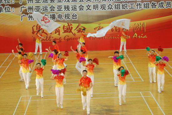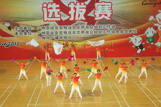 廣藥潘高壽亞運助威團成員嚴格按照亞組委及上級的有關(guān)要求,認真做好本職工作,努力參加訓練。隊伍組成后,人人都能按照要求,堅持利用業(yè)余時間進行各種項目和動作的訓練,并經(jīng)過嚴格的訓練組成了一支作風過硬,動作標準,紀律嚴明的亞運志愿者助威隊伍,除了按亞組委、亞殘組委指定的規(guī)定動作之外,還自創(chuàng)編排了一套精彩的自選動作參加各級比賽。