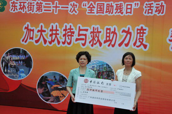 5月11日上午,由東環街辦事處主辦,東環街殘聯、創建辦、民政辦等單位承辦的東環街第二十一次“全國助殘日”活動暨“扶殘助困”捐助活動在東環街文化廣場舉行。番禺區殘聯副理事長梁偉棠、東環街道辦事處副主任黃釗華等領導出席并講話。潘高壽黨委書記鄭楠出席活動,并代表公司向東環街殘聯捐助。