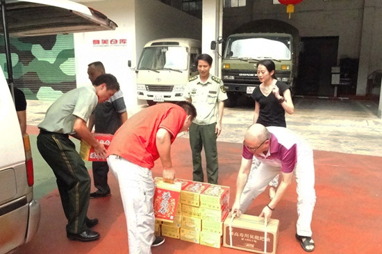 “八一”建軍節當日,我司工會黃伯強主席和黨辦譚慕常干事一行代表公司到武警廣東邊防總隊藝術團進行節日的慰問,向藝術團武警官兵們送上我司的消暑涼茶、潤喉糖等產品。