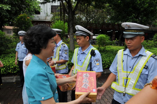 盛夏炎炎,暖暖人心。810下午,潘高壽公司與市橋街道辦事處一行慰問堅守崗位的市橋交警大隊第一中隊交警以及服務在“創文”第一線的番禺志愿服務隊,送上一批涼茶,送去暖暖的關愛之情。