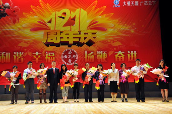 當然,潘高壽的發展離不開潘高壽人的艱辛努力。會上,魏總宣讀了2011年“雙達標”勞動競賽表彰先進(先進集體、五好達標班組、潘高壽之星、三十年工齡員工)的決定。各獲獎集體和個人激動陳詞表達對企業的感恩之情。接著,大家以勁歌熱舞來慶賀企業生日。演出的《永遠跟黨走》、《相親相愛一家人》、《咱們工人有力量》等十多個節目全為員工們自編、自導、自演。其中大型時裝音樂劇《和諧企業》逾70人參演,公司班子成員到一線生產員工齊齊參與。節目展現了潘高壽人熱愛生活與工作、銳意進取的精神風貌;彰顯的是潘高壽人在廣藥集團“大南藥”、“大健康”產業、“136”戰略的指導下,發揮智慧與力量,續寫潘高壽的百年輝煌!