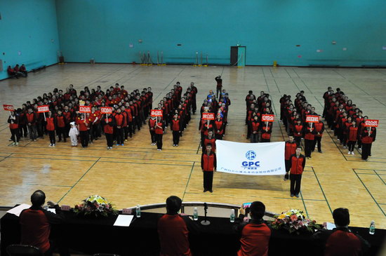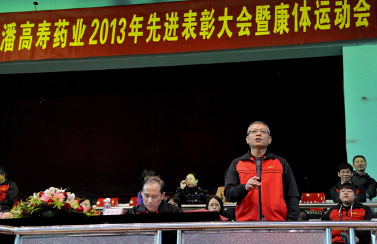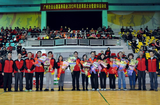 1128,上午2013白云山潘高壽公司評先表彰暨康體運動會在廣州荔灣體育館舉行。800名員工歡聚一堂。領導致詞,表彰先進,康體活動······潘高壽人豪情滿懷、斗志昂揚,總結成績,回顧和頌揚潘高壽123周年的改革發展光輝歷程與業績······