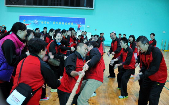 在康體活動中這種進取的精神得到充分的體現。員工們在“鴻運當頭”、“力拔山河”、“財源滾滾”、“運寶到家”四個項目中表現出很強的團隊意識與協作能力。期間,公司班子成員分別為四十年和三十年工齡員工頒獎,最令人矚目是以九個工會分會為單位的拔河比賽把大會推向高潮,采購供應分會勇奪頭名······展望未來,員工們意氣風發,表示全力沖刺迎新年,為實現潘高壽十二·五規劃、振興“大南藥”、發展“大健康”作出新貢獻。