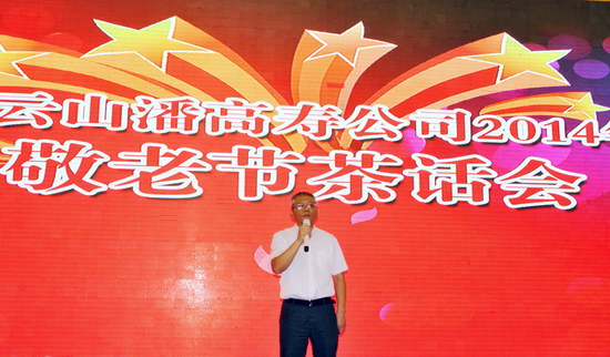 敬老節(jié)前夕,我司在東江萬豪酒家召開2014年度金秋敬老茶話會(huì)。500多名退休職工歡聚一堂。公司班子成員、各部門總監(jiān)及工會(huì)各分會(huì)主席出席茶話會(huì)。董事長(zhǎng)總經(jīng)理?xiàng)顤|升,紀(jì)委書記、工會(huì)主席梁志平分別致詞祝酒,感懷老員工們?yōu)槠髽I(yè)所做的貢獻(xiàn),并祝他們健康長(zhǎng)壽,欣祝企業(yè)前程錦繡。