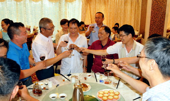 紀(jì)委書記、工會(huì)主席梁志平向退休員工祝酒