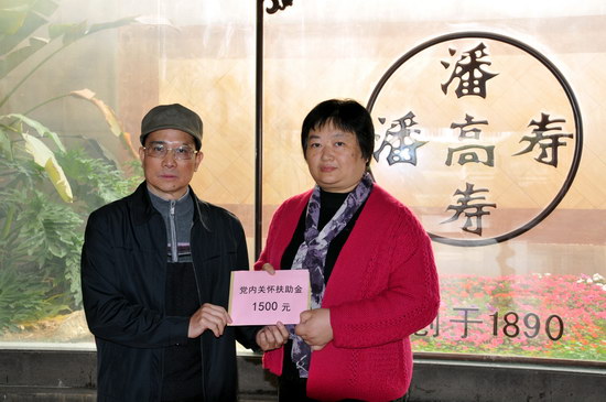 春節前,上級黨組織、工會給我司困難黨員、員工送來了溫暖和關懷。廣藥集團總經理助理黎洪、工會副主席陸青一行慰問了廣東省勞動模范、我司老領導彭文協,廣藥集團黨委、工會分別慰問了我司困難黨員楊紅燕患重病員工。番禺區東環街工會慰問了我司困難員工楊紅燕和周先佳,并送上慰問品、慰問金和新春的祝愿。
