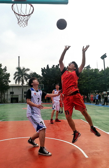 隨著一聲哨響,李錦云主席為潘高壽公司與拜迪公司的首場籃球聯誼賽開球,高高拋起的籃球點燃了參賽隊員們的激情,拉開了籃球賽的帷幕。