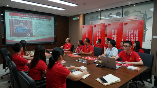會后,公司黨委委員到各自所在黨支部與黨員共同學習習近平總書記在慶祝中國共產黨成立100周年大會上的重要講話并進行分享交流。黨委書記蘇廣豐激勵黨員干部立足崗位、在時代的浪潮中繼續砥礪前行。多名黨員分享了父輩獲得“光榮在黨50年”紀念章的經歷,疫情期間測核酸、打疫苗、志愿服務中感受到的點滴溫暖等,表示將繼續聽黨話、跟黨走,學黨史、擔使命,發揮自己的光和熱,不負時代、不負韶華,為實現中華民族偉大復興貢獻積極力量。大家齊聲歌唱《沒有共產黨就沒有新中國》,唱響初心、向黨致敬。