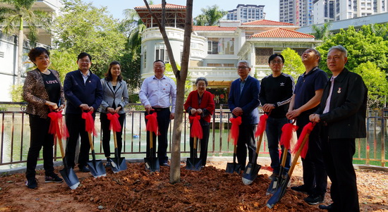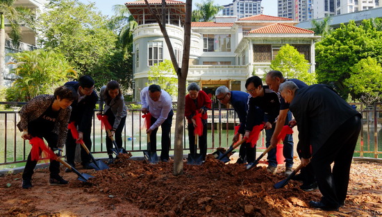 活動現場,郭蘭英老師與白云山潘高壽董事長、總經理楊東升,黨委書記蘇廣豐,紀委書記王靜文,副總經理劉永忠、盧其福,監事會主席、工會主席陶躍良一同植下“無憂樹”。郭蘭英藝術發展基金會郭世珍副會長、郭文理事、歐陽海妮秘書,郭蘭英藝術學校校友會會長孫霏霏、劉小聰、副會長陳昊等共同參與。