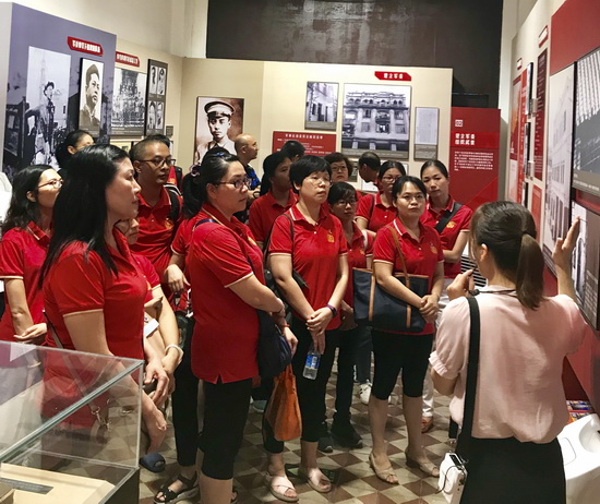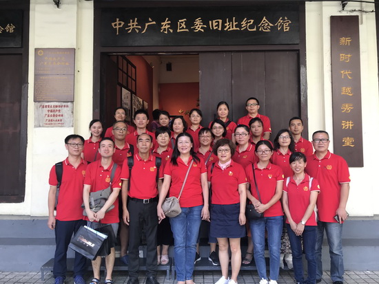 為深化“不忘初心,牢記使命”主題教育,深入學習貫徹習近平新時代中國特色社會主義思想和黨的十九大精神,弘揚紅色文化和傳承革命傳統,2019年10月11日下午,白云山潘高壽藥業公司紀委書記、工會主席、監事會主席張奇志同志帶領黨員代表前往中共廣東區委(監委)舊址紀念館開辦的“新時代紅色文化講習所”參觀學習。