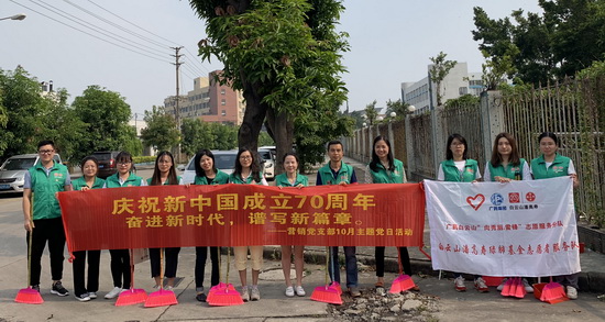 10月26日是環(huán)衛(wèi)工人節(jié),為號召大家尊重環(huán)衛(wèi)工人勞動,關(guān)注城市建設(shè),樹立環(huán)衛(wèi)風(fēng)尚,支持環(huán)衛(wèi)垃圾分類工作,2019年10月25日,營銷黨支部聯(lián)合營銷團(tuán)支部開展主題為“尊重環(huán)衛(wèi)工人勞動,垃圾分類文明同行”的黨日活動,召集支部在司黨員和團(tuán)員代表作為環(huán)保志愿者對天保路段進(jìn)行清掃并將垃圾進(jìn)行分類處理。