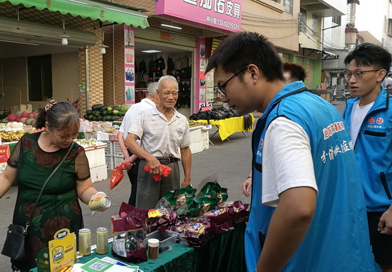 生產(chǎn)運行部多名黨員骨干帶著各車間黨團員分別在東城市場、蔡邊市場和龍美市場三個點擺攤促銷刺檸吉和龜苓膏。葉善強高級經(jīng)理率先帶隊上陣,黨員、團員們擺上扶貧產(chǎn)品“刺檸吉”和潘高壽消暑產(chǎn)品“迷你龜苓膏”。大家積極促銷的熱情,迅速吸引了市場里的顧客上前了解光顧。現(xiàn)場反饋熱烈,購買熱度持續(xù)高漲。接下來,生產(chǎn)黨支部將繼續(xù)開發(fā)更多人流量大、接地氣的攤位,助力脫貧攻堅,為人民群眾在炎炎夏日送上清涼。