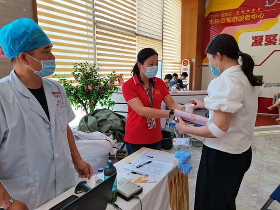 活動(dòng)現(xiàn)場,白云山潘高壽志愿者迅速投入到獻(xiàn)血活動(dòng)的志愿服務(wù)當(dāng)中去,協(xié)助園區(qū)完成對獻(xiàn)血人士進(jìn)行資料登記、維持秩序、流程指引等工作并積極主動(dòng)參與到獻(xiàn)血行列中。